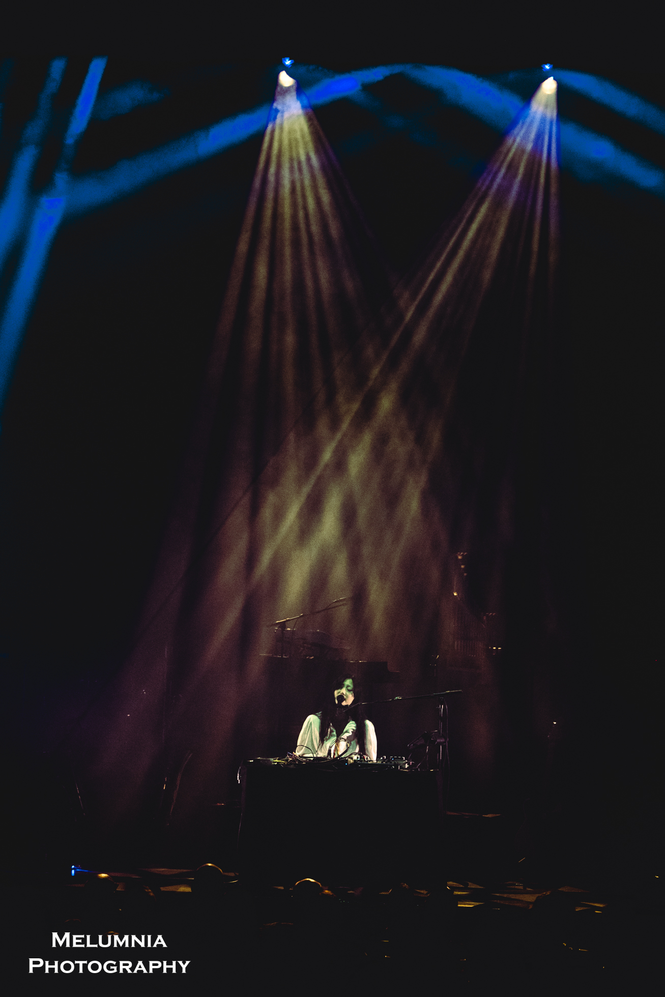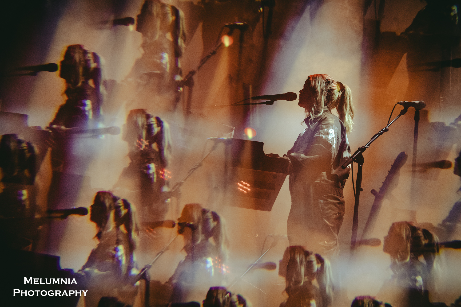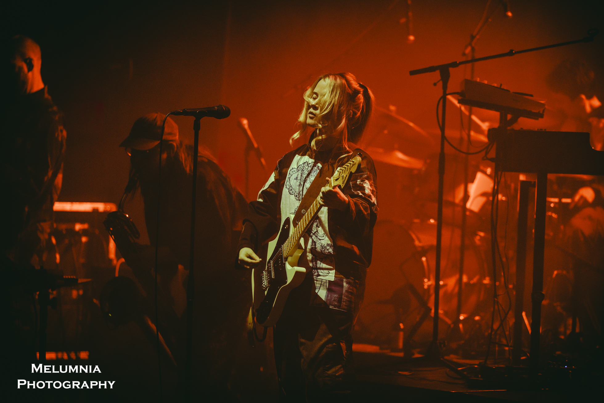 Kaum stand die insgesamt sechs köpfige Band auf der Bühne (alle waren sie in grundsätzlich gleiche Overalls gekleidet), offenbarte sich nicht nur das grossartige Können der einzelnen Bandmitglieder, sondern es zeigte sich auch die hervorragende Idee der Verantwortlichen des Festival Antigel, dieses Konzert im Saal des Alhambra, der in seinen Grundzügen an den Saal im Volkshaus Zürich erinnert, durchzuführen. Bombastische Musik in einem sorgfältig renovierten historischen Kino-/Theatersaal aus dem frühen 20. Jahrhundert ist punkto Akustik und Atmosphäre kaum zu überbieten. Letztere lebte nicht zuletzt auch von der intensiven Lichtshow, die auf Grund der grossen Raumhöhe besonders gut zur Geltung kam und die Bühne mal in ein blutrotes, mal in ein blau-grünes Kleid hüllte. Und dann war da halt immer diese tolle und gut gelaunte Band, die das Letzte aus den Instrumenten herausholte, um den einzigartigen Sound von Anna von Hausswolff zu performen.