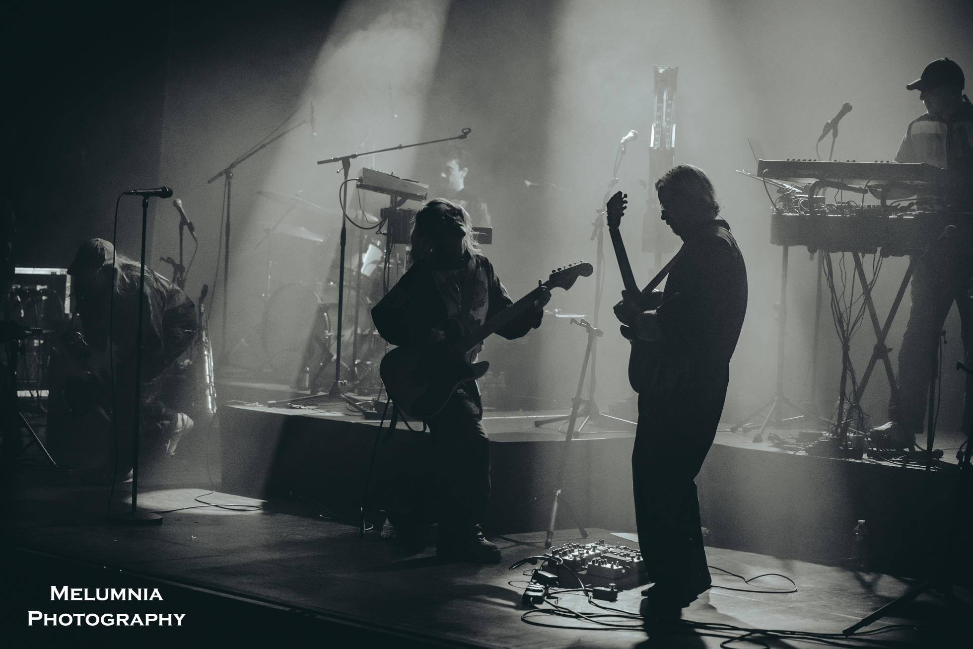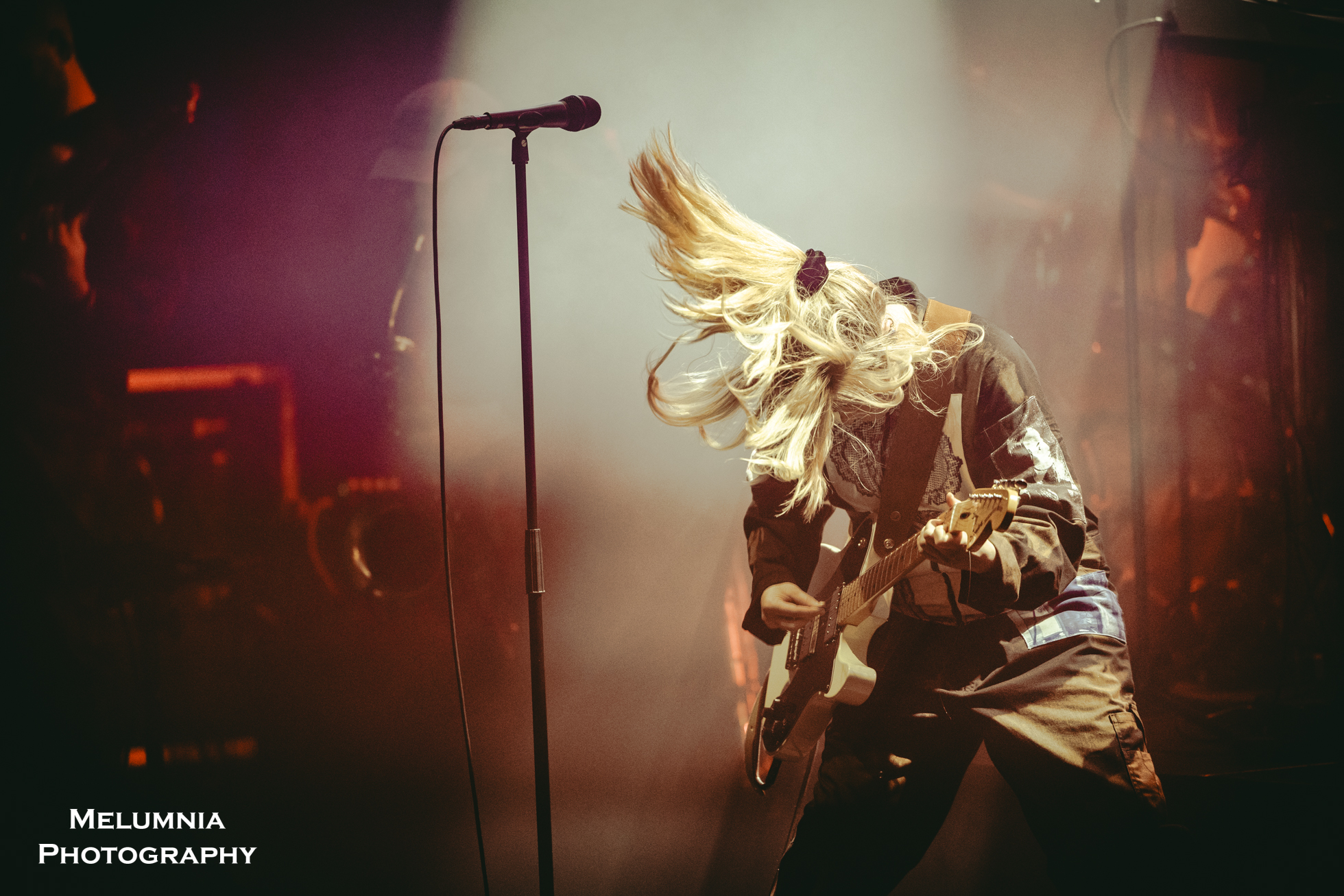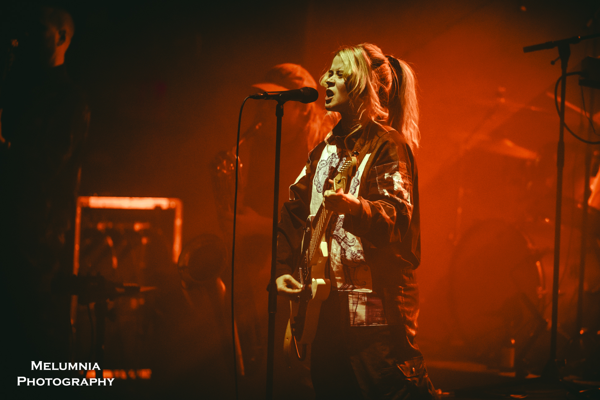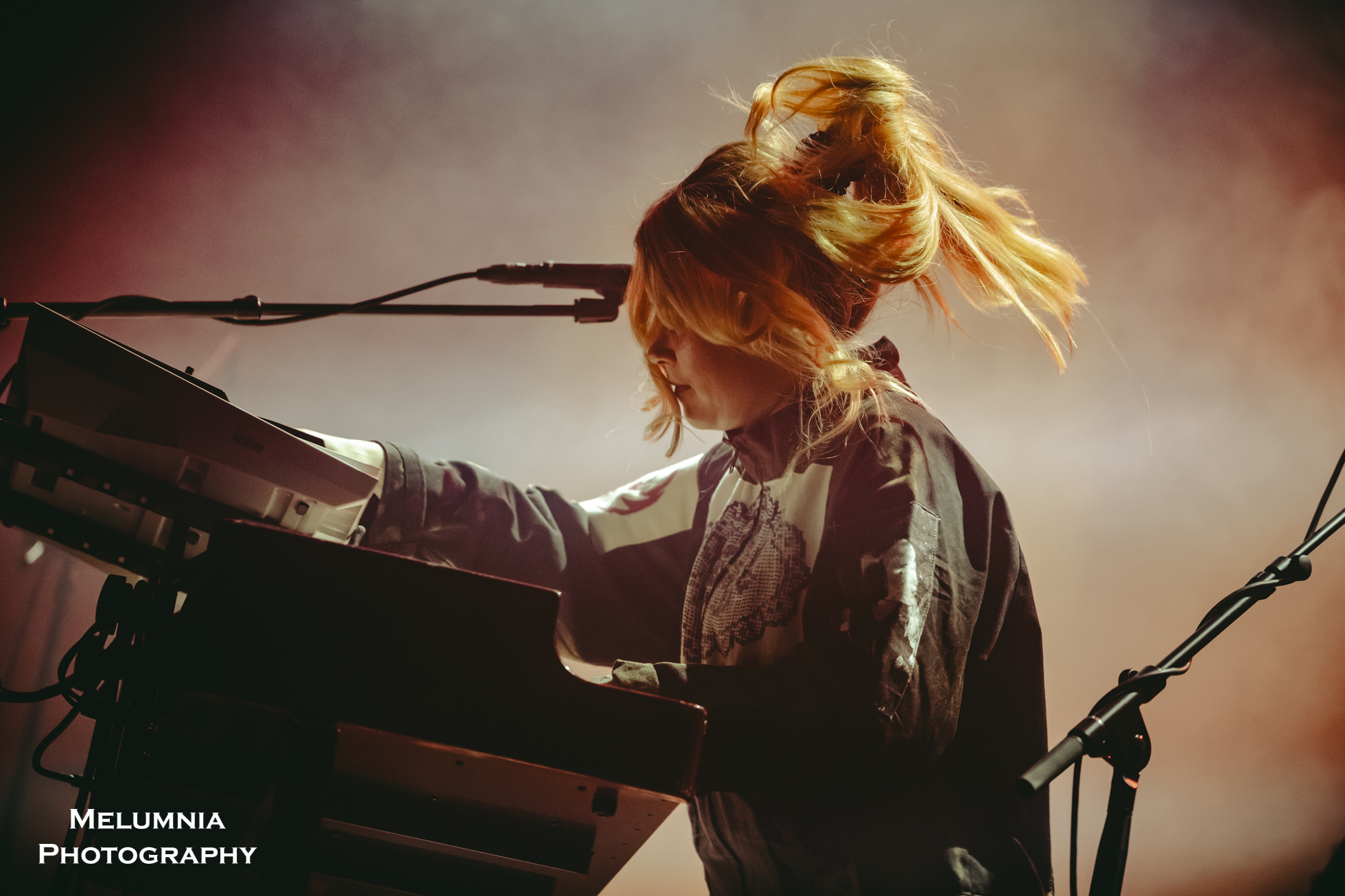 Kaum stand die insgesamt sechs köpfige Band auf der Bühne (alle waren sie in grundsätzlich gleiche Overalls gekleidet), offenbarte sich nicht nur das grossartige Können der einzelnen Bandmitglieder, sondern es zeigte sich auch die hervorragende Idee der Verantwortlichen des Festival Antigel, dieses Konzert im Saal des Alhambra, der in seinen Grundzügen an den Saal im Volkshaus Zürich erinnert, durchzuführen. Bombastische Musik in einem sorgfältig renovierten historischen Kino-/Theatersaal aus dem frühen 20. Jahrhundert ist punkto Akustik und Atmosphäre kaum zu überbieten. Letztere lebte nicht zuletzt auch von der intensiven Lichtshow, die auf Grund der grossen Raumhöhe besonders gut zur Geltung kam und die Bühne mal in ein blutrotes, mal in ein blau-grünes Kleid hüllte. Und dann war da halt immer diese tolle und gut gelaunte Band, die das Letzte aus den Instrumenten herausholte, um den einzigartigen Sound von Anna von Hausswolff zu performen.