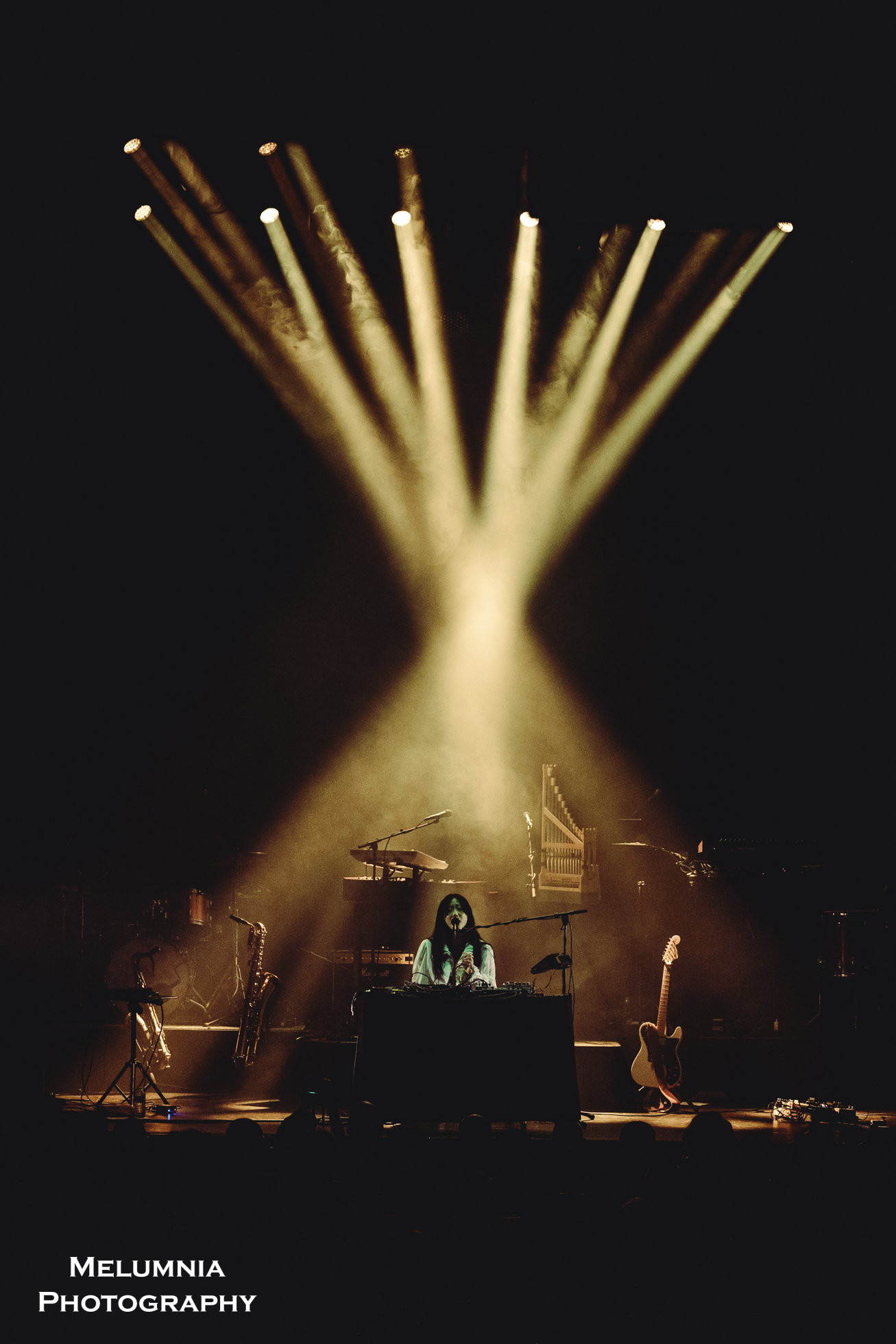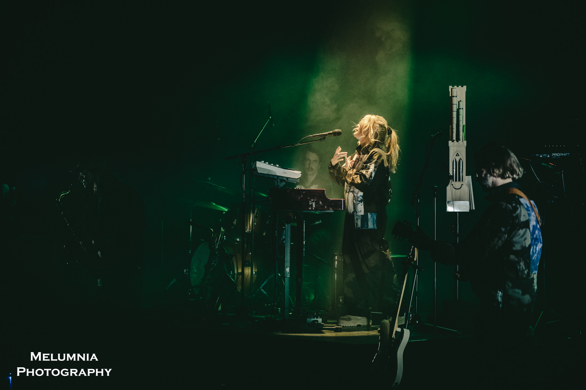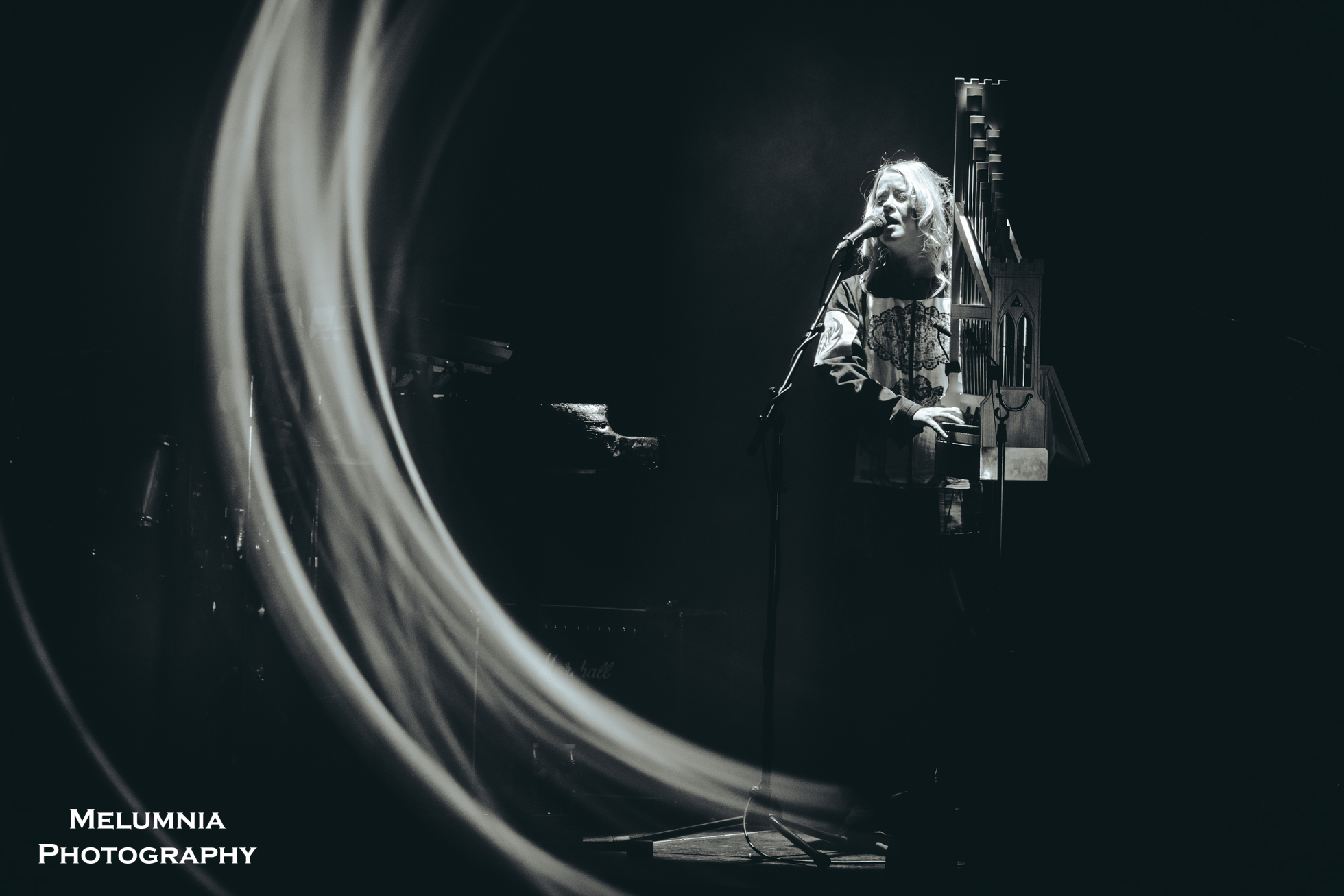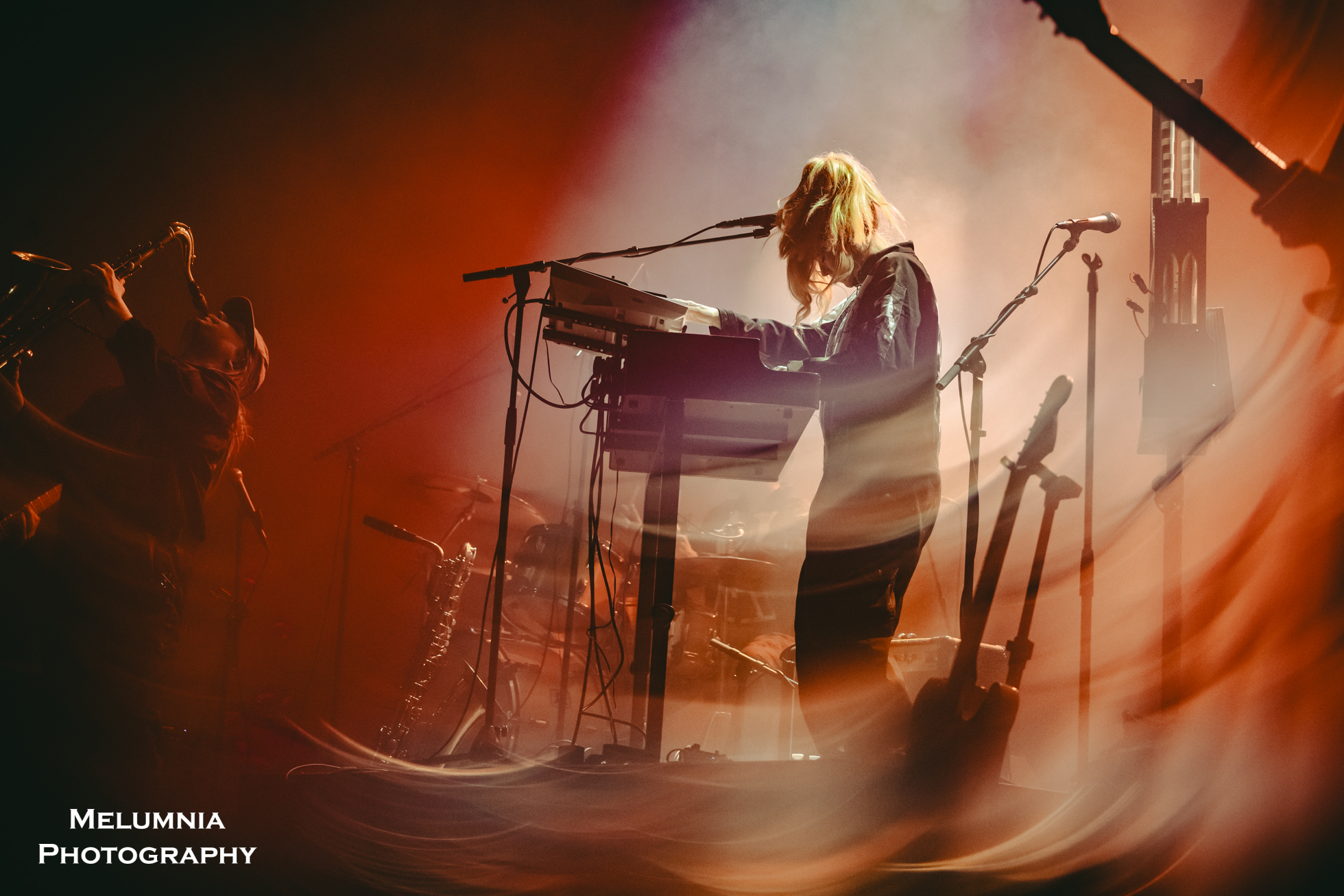 Zu diesen Instrumenten zählte sehr wesentlich auch die klare und präzise Stimme von Anna von Hausswolff, die, egal, ob sie auf der Bühne stand, sass oder lag, gleichermassen begeisternd rüberkam und, man kann es drehen und wenden wie man will, bei „The Mysterious Vanishing Of Electra“ ein erstes Mal Begeisterungsstürme beim Publikum auslöste. Das heisst natürlich nicht, dass die anderen Songs, die grossmehrheitlich auf „ICONOCLASTS“ zu finden sind, nicht ebenso imposant daherkamen. Dass Anna von Hausswolff das Konzert vor der Zugabe mit „Ugly And Vengeful“ beendete, zeigt mutmasslich aber doch, dass diese beiden Songs auch für die Künstlerin selbst eine hohe Bedeutung haben. Das Publikum, leider zum Sitzen motiviert, dankte es mit tosendem Applaus und blieb, von Anna von Hausswolff aufgefordert, für das Encore gleich stehen. Mit „Funural For My Future Children“ aus dem Album „Ceremony“ von 2012, das der Saxophonist grossartig beendete und in „Struggle With The Beast“ aus „ICONOCLASTS“ überführte, kam ein Konzert der Extraklasse nach knapp zwei Stunden zu einem Ende, das nach dem Geschmack des Publikums gerne auch noch etwas hinausgeschoben hätte werden können. Ganz die Professional stand Anna von Hausswolff zu guter letzt am Merch ihre Frau und entliess die Leute mit handsignierten Vinyls und CDs ins Wochenende.