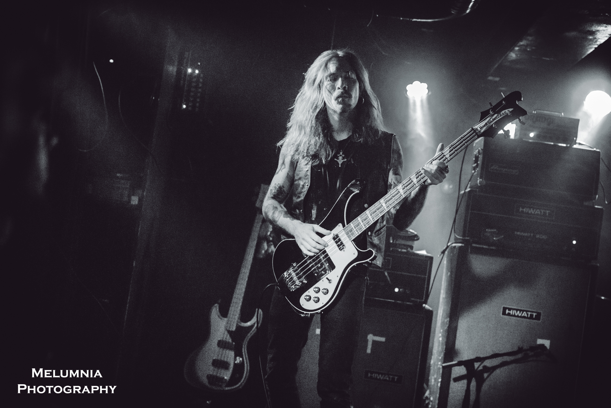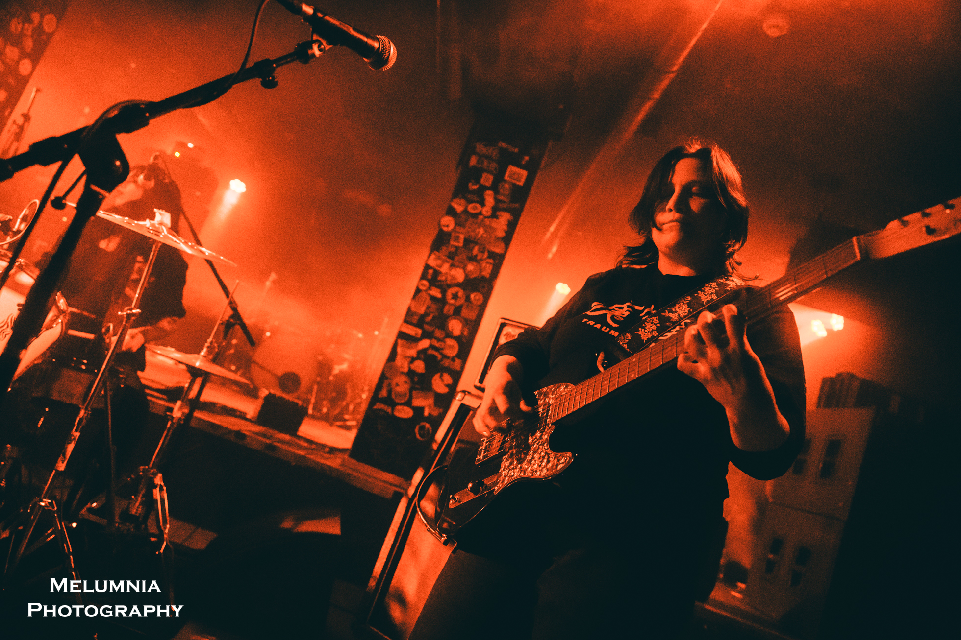 Den Auftakt machte die Zürcher Blackened Sludge-Band Radon, die ihr Equipment unmittelbar vor der eigentlichen Bühne aufgebaut hatte und damit nicht nur eine schon beinahe intime Nähe zum Publikum schaffte, sondern eine solche auch zuliess. Mit grossem Mut für eine schon fast atemberaubende Langsamkeit mäandrierte das Trio durch verschlungene Soundstrukturen mit gnadenlos schweren Bass-Riffs und mitunter rasend schnellem Gitarrensound. Bemerkenswert ist, dass Sam, Milena und Sab den Gesang untereinander aufteilen und damit mal solo, mal mehrstimmig unterwegs sind. Dadurch entsteht nicht nur auf der Ebene der Performance, sondern auch auf der Ebene der Wahrnehmung der Band durch das Publikum eine grosse Egalität und Verbundenheit. Da es Radon in der Formation, wie sie sich im Sedel präsentierte, in Zukunft nicht mehr geben wird (die Band orientierte darüber auf Social Media), kam diesem Gig (ein aller letzter erfolgte am Tag darauf im Bad Bonn, Düdingen) ein ganz besonderer Stellenwert zu und lässt das Doom-Publikum mit Sicherheit mit einem grossen weinenden Auge zurück. Danke, Radon.