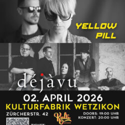 Yellow Pill sind keine Band, die sich in Schubladen stecken lässt. Die Musiker aus der Romandie mischen modernen Alternative Rock mit einer ordentlichen Portion Energie, Emotion und unbändiger Spielfreude. Mitreissende Riffs, mächtige Grooves und eingängige Vocals sorgen dafür, dass ihre Shows von der ersten bis zur letzten Minute elektrisieren.