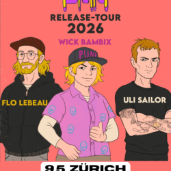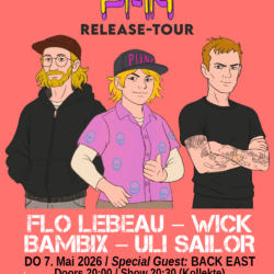 Drei Solo-Artists aus drei Ländern feiern ihren gemeinsamen Single-Release mit einer Mini-Tournee quer durch die Schweiz. Erster Halt ist Bern. Die Cafete macht sich bereit für Wick Bambix aus den Niederlanden, Uli Sailor aus Deutschland und Flo LeBeau aus der Schweiz. Zusätzliche Verstärkung gibt’s von den lokalen Melodic-Punks von Back East.