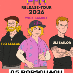 Drei Solo-Artists aus drei Ländern feiern ihren gemeinsamen Single-Release mit einer Mini-Tournee quer durch die Schweiz. Seid bereit für Wick Bambix aus den Niederlanden, Uli Sailor aus Deutschland und Flo LeBeau aus Bern. Zweiter Halt ist das Treppenhaus in Rorschach. Wer nicht kommt, verpasst was!