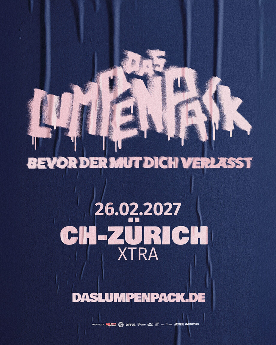 Die energiegeladenste, schlagfertigste und kompromissloseste deutsche Punkrockband ist zweifellos Das Lumpenpack. Mit einem Sound, der intelligenten Witz mit einem messerscharfen Blick auf gesellschaftliche Schieflagen, persönliche Krisen und all das Dazwischen verbindet, schaffen sie Songs, die ehrlich, laut und voll Tiefgang sind. Am Freitag, 26. Februar 2027, kommt Das Lumpenpack mit ihrer energiegeladenen Show live ins X-TRA Zürich.