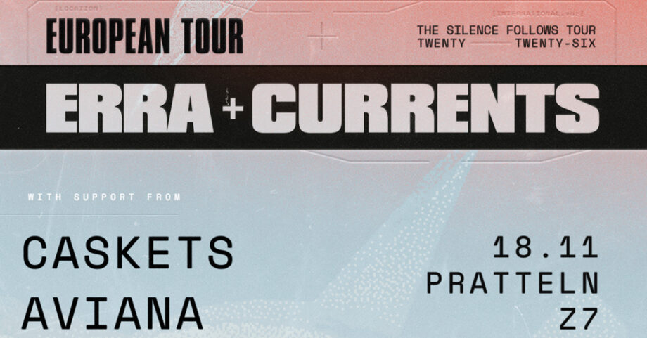 Im November präsentieren wir das fetteste Metalcore-Package des Jahres 2026. Angeführt wird der gnadenlose Tour-Tross von den Szene-Giganten ERRA, die mit dem neuen Album „Silence Outlives The Earth“ einen weiteren Meilenstein in ihrer erfolgreichen Karriere setzen. Als Support Acts sorgen Currents, Caskets und Aviana für multiple Coregasmen.