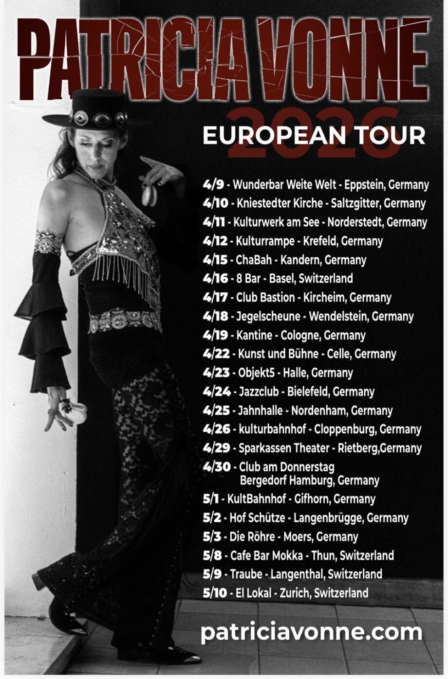 Unser Freund Alejandro Escovedo sagt von ihrem Fünftling «Rattle My Cage» (2014), es sei ihr allerbestes Album ever. Und das meint er nicht nur, weil seine Songs sowie solche von Doyle Bramhall, Rosie Flores, Johnny Reno & anderen darauf zu hören sind. Als Rock’n’Roll-Cinderella sorgte Vonne auch in Montreux schon für ordli Rauch über dem deep-purpligen Lac Léman. Ihr aktuell 10tes Album «My Heart’s Got A Mind of Its Own» kommt im April 26 und vereint all die facetten- wie kastagnettenreichen Komponenten, die Vonne zu einem ausserordentlichen musikalischen Juwel von Texas machen: Variantenreicher Tex-Mex-Rock’n’Roll und Latin-Rock, Folk und Flamenco. Zwei der Tracks schrieb Vonne für den Film «Switch-up» der Regisseurin Tara Pirnia, während sie den Titelsong mit keinem Geringeren als Chris Isaak zusammen verfasste. So wird es denn auf Mississihl Island wieder einmal aus allen Rohren, Ritzen, Löchern und Ecken krachen, blitzen und funkeln wie es nur the one and only Patricia Vonn zuwerke bringt. Muchachas & Gringos, watch your hot-blooded corazon!