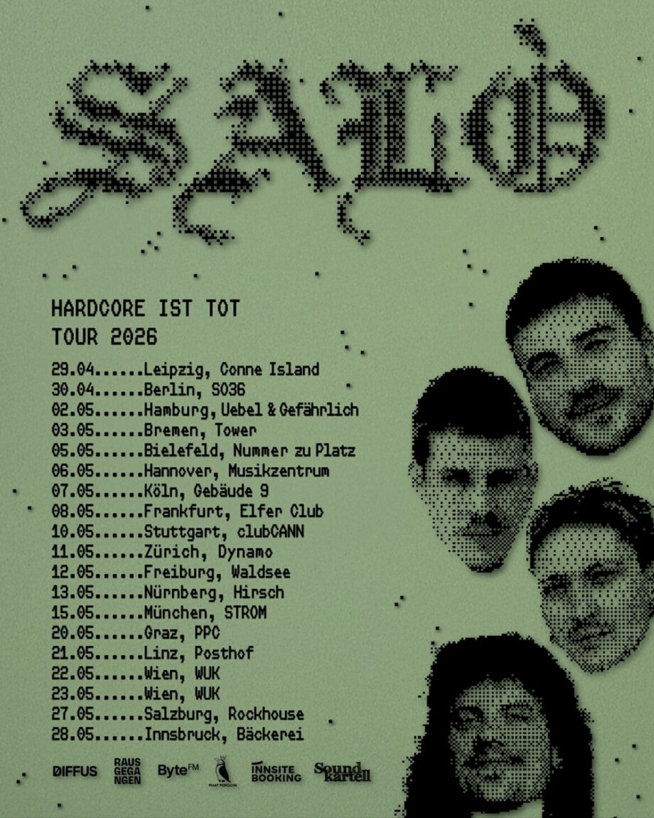 Auf die HARDCORE IST TOT TOUR 2026 kommt SALÒ mit neuem Album (VÖ: April 26) und einer exzessiven Liveshow, wütender, lauter und intimer denn je. Die Vorab-Single „JELLO BIAFRA“, benannt nach dem legendären Dead-Kennedys- Frontman, zeigt unmissverständlich wo die Reise hingeht: „Miete wird nicht teurer – Miete wird teurer gemacht“ – ein Satz wie eine Guillotine, bei der niemand mehr den Kopf wegziehen kann. „JELLO BIAFRA“ ist nicht bloß ein Song. Es ist ein akustisches Pamphlet, ein manifestgewordener Schlag in die sterilen Flure spätkapitalistischer Mietverträge.