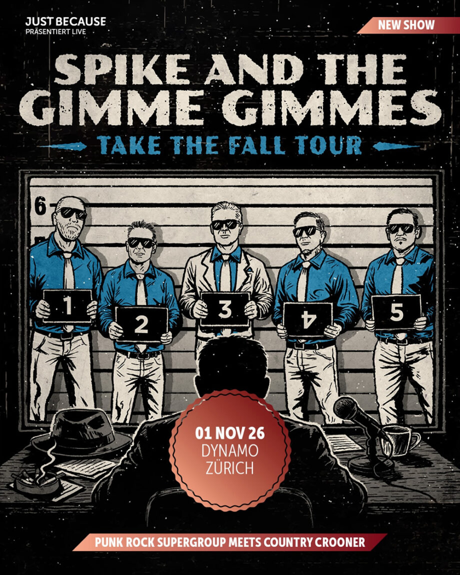 Eine Punkrock-Supergroup mit wechselnder Besetzung aus weltweit tourenden Musikerinnen und Musikern: Spike And The Gimme Gimmes vereinen Mitglieder von Bands wie Ramones, Black Flag, Social Distortion, Rocket From The Crypt, The Damned, Strung Out und No Doubt. Angeführt von Frontmann Spike Slawson begeistert die Band seit Mitte der 90er-Jahre mit ihrer eigenwilligen Mischung aus Country-Crooner-Charme und Punkrock-Attitüde ein internationales Publikum. Als eine der beliebtesten Touring-Coverbands weltweit verbinden sie Humor, Spielfreude und rohe Live-Energie. «Country Roads» und «Leaving On A Jet Plane» von John Denver waren die beiden ersten Songs, die die Me First And The Gimme Gimmes 1995 veröffentlichten und damit ein neues Zeitalter im Punkrock einläuteten.