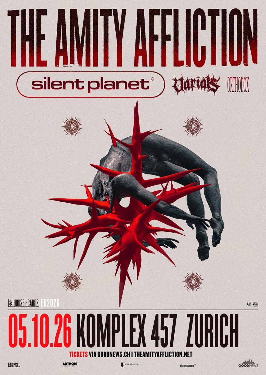 Wuchtige Riffs, intensive Breakdowns und eingängige Melodien erwarten euch am Montag, 05. Oktober 2026 im Komplex 457 in Zürich: The Amity Affliction bringen ihre House Of Cards-Tour in die Schweiz – begleitet von den Special Guests Silent Planet, Varials und Orthodox.